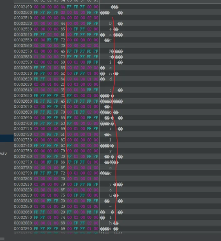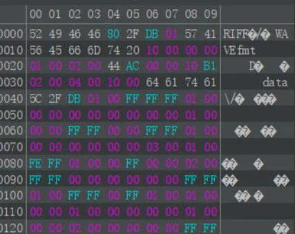 The interval of each byte data is 9 and the first byte is at the beginning of the wav data