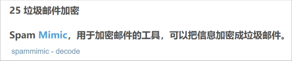 然后把编码去解码一下就得到邮件的文本了,再去 spam mimic 网站解码一下就得到 flag 了