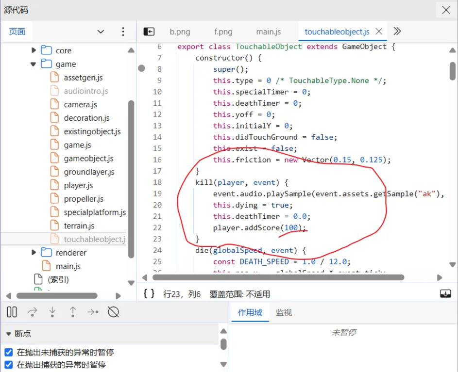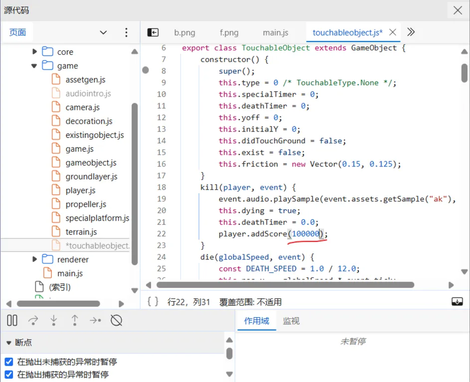 翻了翻js代码,发现game文件中的touchableobject.js,里面的这一段代码有点意思