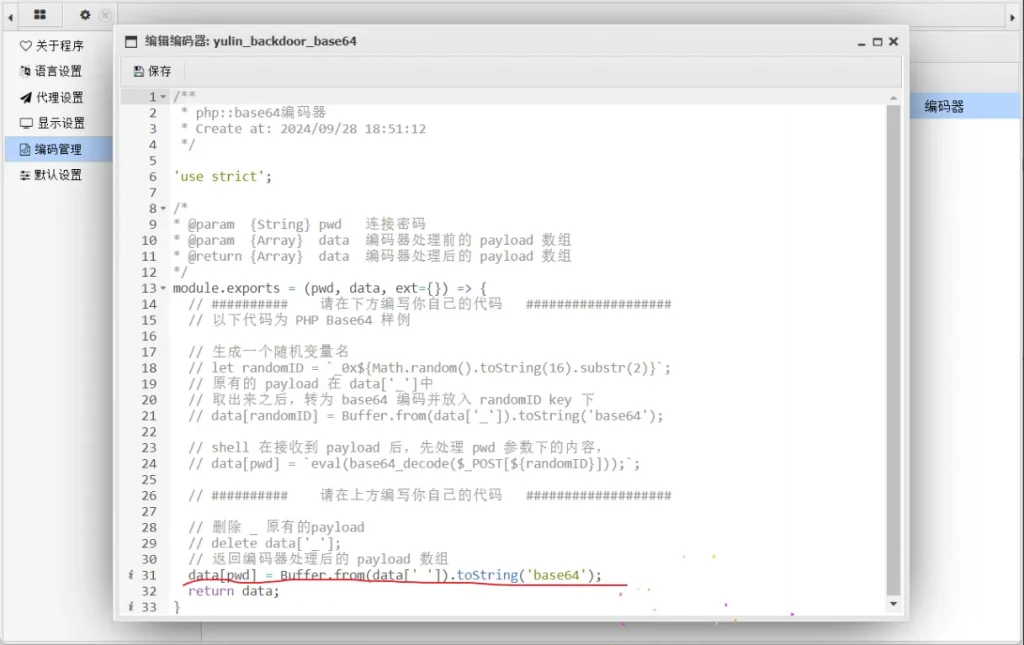 这听起来好像很难的样子,其实很简单,只需要把蚁剑要传输的命令直接base64编码一下就行了