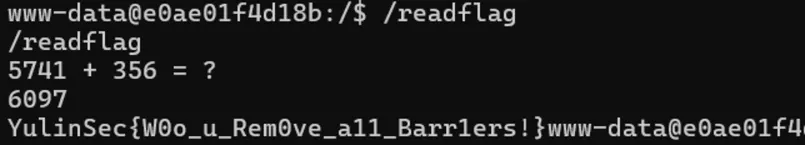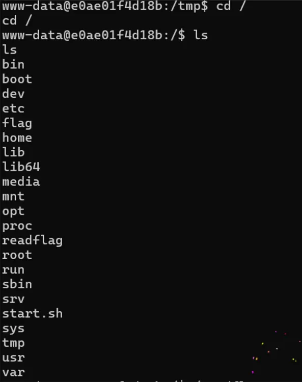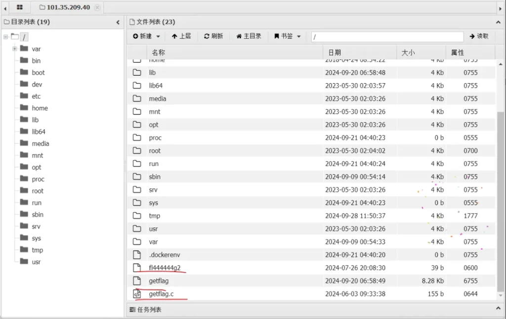 直接看fl444444g2文件里面发现是空的,再次读题,要求我们执行 /getflag来获取到flag
