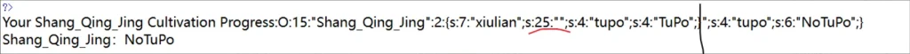 然后看到xiulian内容此时的长度是23,那我们就可以在最前面加上23个 chu_qiaoingshen ,进行字符数的增加,使其合理