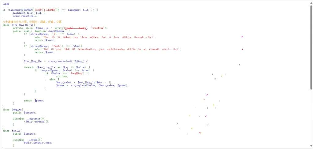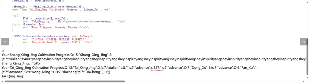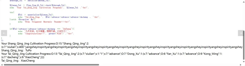 首先最最重要的还是要先读懂代码(注意 Taiji_Xuanqing_Dao_Tai.php 和 Taiji_Xuanqing_Dao_Shang.php 这两份代码都是可以访问的())